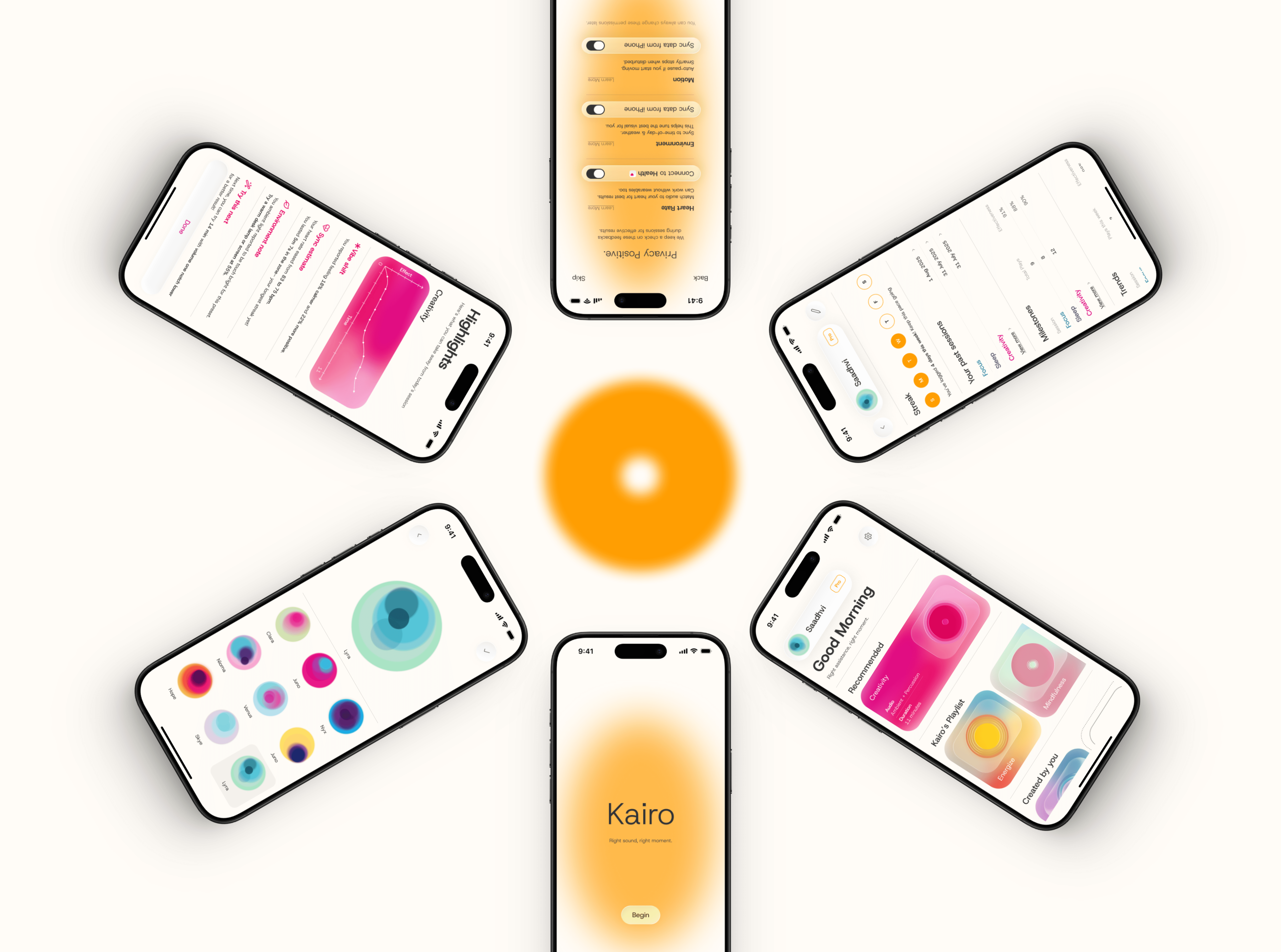 Kairo is an exploratory project that positions itself at the intersection of neuroscience and assistive technology. Kairo is a wellness application that draws from the principles of Audio-Visual Stimulation (or neural entrainment), providing mental health support through consumer technology.